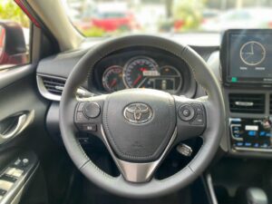 Một điểm đặc biệt là Toyota Vios bản GR-S thể thao được trang bị cả lẫy chuyển số thể thao sau vô lăng. Điều này hứa hẹn sẽ đem đến trải nghiệm lái thú vị hơn. Nhưng hơi tiếc là các tính năng như Cruise Control và chìa khoá thông minh & khởi động nút bấm chỉ có ở bản 1.5G. Các bản 1.5E vẫn chưa được trang bị.